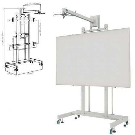 El APPIBSTD es un soporte móvil para pizarra interactiva de 80 a 120 pulgadas, con soporte para montaje de proyectores de corta distancia.El soporte es regulable en altura y dispone de 4 ruedas con sistema de freno, además de 4 patas para una completa fijación. Con diseño práctico y funcional, muy fácil de instalar, ideal para su uso en aulas, oficinas o salas de conferencias.