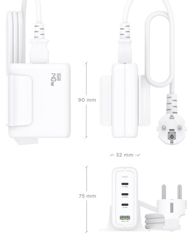Cargador Sobremesa GaN 140W, 3x USB-C PD3.1 QC4.0 QC5.0, 1x USB-A QC3.0, Blanco