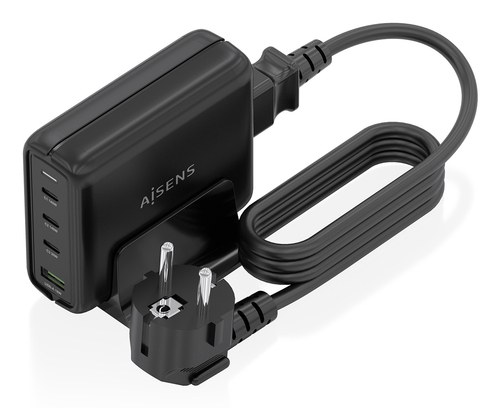 AISENS Cargador Sobremesa GaN 140W, 3x USB-C PD3.1 QC4.0 QC5.0, 1x USB-A QC3.0, Negro. Tipo de cargador: Interior, Alimentación: Corriente alterna, Compatibilidad del cargador: Universal. Voltaje de entrada: 100 - 240 V, Voltaje de salida máximo: 20 V, Co