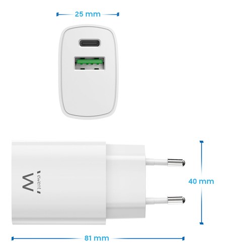 Ewent EW1321_R1. Tipo de cargador: Interior, Alimentación: Corriente alterna, Compatibilidad del cargador: Universal. Voltaje de entrada: 100 - 240 V, Voltaje de salida máximo: 12 V. Número de puertos USB Tipo C: 1, Carga rápida. Color del producto: Blanc