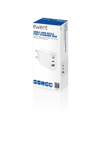 Ewent EW1325. Tipo de cargador: Interior, Alimentación: Corriente alterna, Compatibilidad del cargador: Universal. Voltaje de entrada: 100 - 240 V, Voltaje de salida máximo: 20 V. Cantidad de puertos USB 2.0: 1, Número de puertos USB Tipo C: 1, Carga rápi
