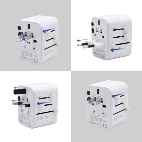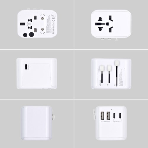 Adaptador de viaje universal con enchufes EU/USA/UK/AUS y 2 puertos USB y 3 Tipo-C