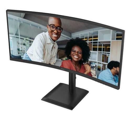 El AOC CU34E4CV es un monitor curvo de 34 pulgadas con resolución UWQHD diseñado para entornos profesionales que requieren amplio espacio de trabajo y conectividad avanzada. Su panel VA 1500R ofrece una experiencia envolvente con gran nivel de contraste y frecuencia de hasta 120 Hz. Integra USB-C con suministro de energía de hasta 90 W, hub USB 3.2, conexión RJ45 y función Smart KVM, facilitando configuraciones multitarea y estaciones de trabajo completas con un solo cable.