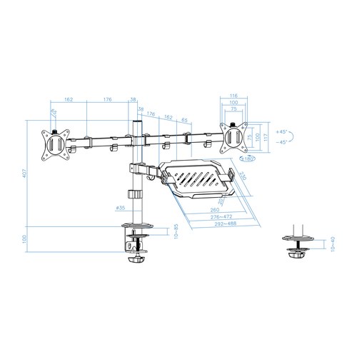 Soporte de Mesa para 2 Pantallas 17"-32" y Portátil, Negro