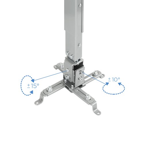 TooQ SOPORTE UNIVERSAL INCLINABLE DE TECHO PARA PROYECTOR PLATA. Tipo de montaje: Techo, Capacidad máxima de peso: 20 kg, Color del producto: Plata. Ancho del paquete: 110 mm, Profundidad del paquete: 55 mm, Altura del paquete: 315 mm