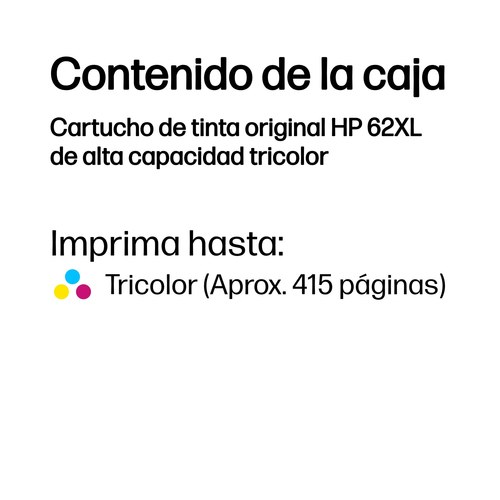 Cartucho de tinta original HP 62XL de alta capacidad tricolor