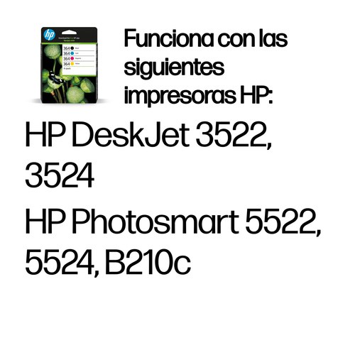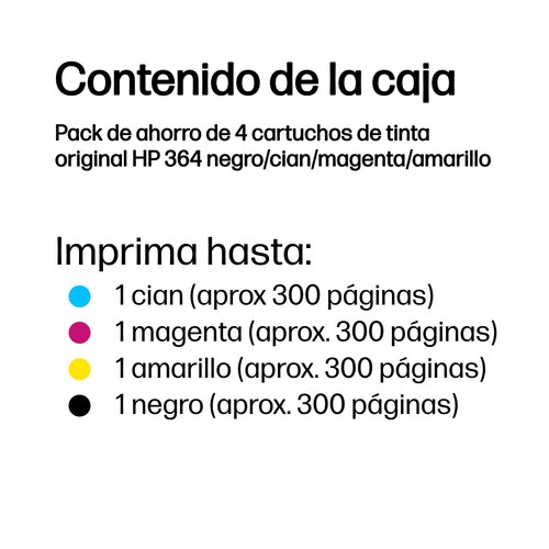 Pack de ahorro de 4 cartuchos de tinta original HP 364 negro/cian/magenta/amarillo
