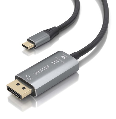 Cable conversor aluminio bidireccional USB-C a DISPLAYPORT, con conector USB-C macho en un extremo y DISPLAYPORT 8K@60Hz macho en el otro