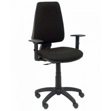 Silla de oficina Elche con mecanismo Contacto permanente básico tapizada con Tela color Negro. Equipada con Base poliamida negra, Brazos 1D y Ruedas de nailon 50 mm