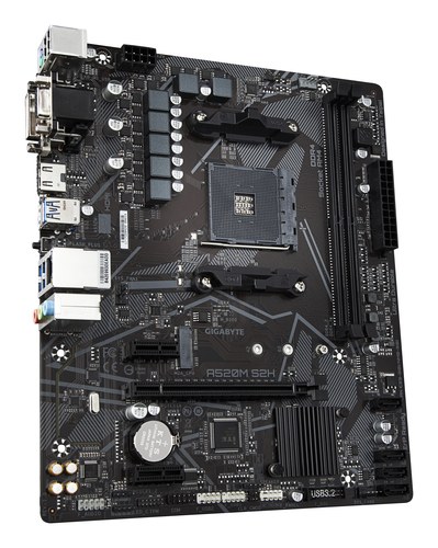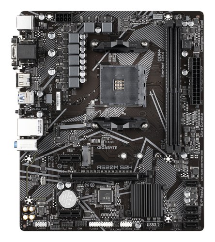 Placa base A520M S2H - Soporta CPUs AMD Ryzen serie 5000 AM4, VRM digital puro de 4+3 fases, hasta 5100MHz DDR4 (OC), PCIe 3.0 x4 M.2, LAN GbE, USB 3.2 Gen 1