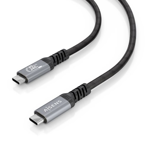 Cable USB4 Gen3x2 Aluminio 40Gbps 8K@60Hz 5A 48V 240W E-Mark, Tipo USB-C/M-USB-C/M, Negro, 0.5M