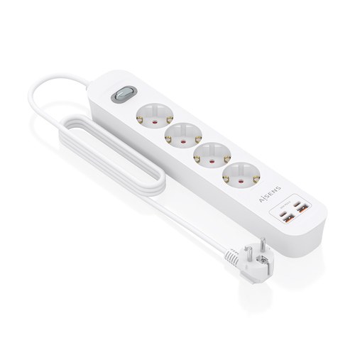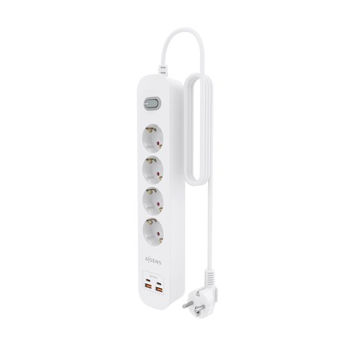Regleta de Enchufes Multifuncion con 4 Tomas + Cargador PD3.0 20W 2xUSB-C, 2xUSB-A, 1.4m, Blanco
