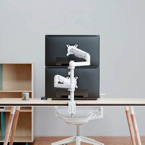 Soporte de Mesa Eco Contrapeso Giratorio e Inclinable para Monitor/TV 9kg (3 PIVOTES, 2 BRAZOS) de 17-32, Blanco