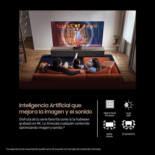 Nuestro procesador NQ4 AI Gen2 analiza el contenido escena a escena para ajustar el brillo y el contraste. Gracias a los píxeles autoluminiscentes, OLED HDR te permite apreciar hasta le último detalle incluso en las escenas más oscuras.