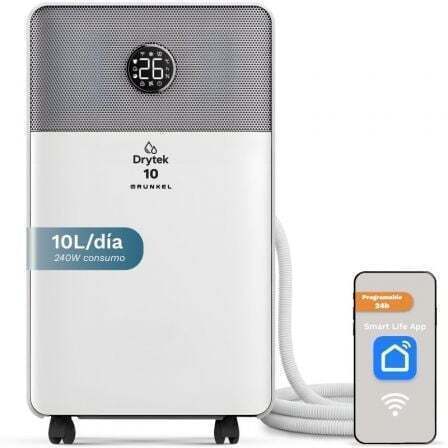 El deshumidificador GRUNKEL DH-10DT es compacto y eficiente, capaz de eliminar hasta 10 litros de humedad al día, ideal para habitaciones pequeñas, baños o vestidores. Gracias a su Wi-Fi integrado, puedes controlar el aparato cómodamente desde tu teléfono móvil mediante app, estés donde estés. Incorpora un temporizador programable de 1 a 24 horas, apagado automático al llenarse el depósito y panel táctil con pantalla LED, todo en un diseño moderno y fácil de usar. Su depósito de agua de 2L es extraíble y muy sencillo de vaciar. Además, utiliza refrigerante ecológico R290/36G, respetuoso con el medio ambiente. Con un nivel de ruido inferior a 42 dB, puedes utilizarlo incluso por la noche sin molestias. El DH-10DT es la solución ideal para mantener un ambiente seco, saludable y controlado desde tu móvil, sin ocupar apenas espacio.