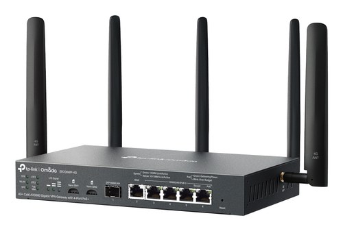 TP-Link ER706WP-4G. Tipo de conexión WAN: RJ-45. Banda Wi-Fi: Doble banda (2,4 GHz / 5 GHz), Tasa de transferencia de datos WLAN (máx.): 300 Mbit/s, Modulación: OFDMA. Tipo de interfaz Ethernet LAN: Gigabit Ethernet, Ethernet LAN, velocidad de transferenc