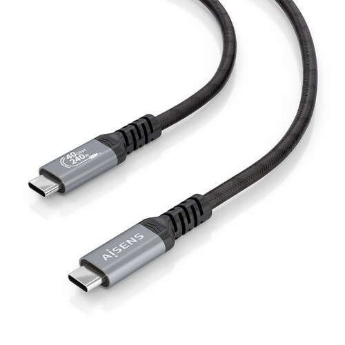 Cable USB4 Gen3x2 Aluminio 40Gbps 8K@60Hz 5A 48V 240W E-Mark, Tipo USB-C/M-USB-C/M, Negro, 1.5m