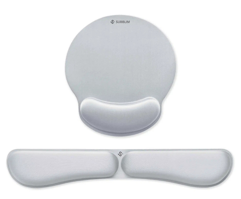 SUBBLIM Pack Ergo Memoryflex â?? Conjunto de alfombrilla para ratón y reposamuñecas para teclado Plata. Material: Algodón, Licra, Poliuretano (PU), Color del producto: Plata, Espesor del escritorio (max): 2 cm. Cantidad por paquete: 1 pieza(s), Ancho d