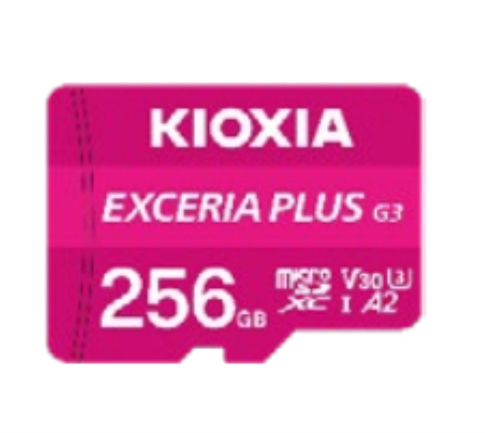 Kioxia EXCERIA PLUS G3. Capacidad: 256 GB, Tipo de tarjeta flash: MicroSDXC, Clase de memoria flash: Clase 10, Tipo de memoria interna: UHS-I, Velocidad de lectura: 210 MB/s, Velocidad de escritura: 150 MB/s, Clase de velocidad UHS: Class 3 (U3), Clase de