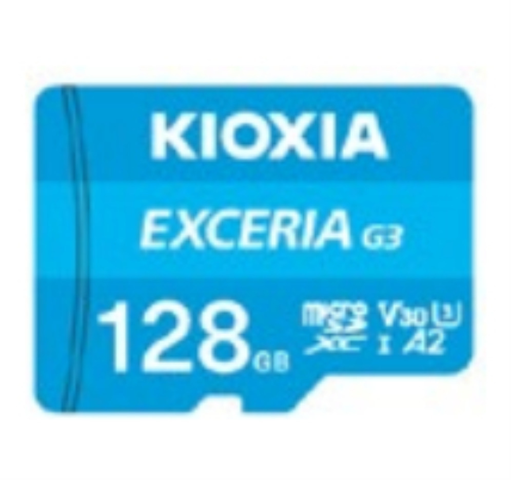 Kioxia EXCERIA G3. Capacidad: 128 GB, Tipo de tarjeta flash: MicroSDXC, Clase de memoria flash: Clase 10, Tipo de memoria interna: UHS-I, Velocidad de lectura: 160 MB/s, Velocidad de escritura: 50 MB/s, Clase de velocidad UHS: Class 3 (U3), Clase de veloc