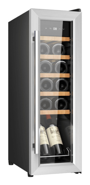 Cecotec Bolero GrandSommelier 1250. Tipo de instalación: Independiente, Color de la carcasa: Negro, Acero inoxidable, Color interior: Negro. Capacidad (botellas): 12 botella(s), Tipo de producto: Nevera de vino, Clase de emisión de ruido: D. Tipo de con