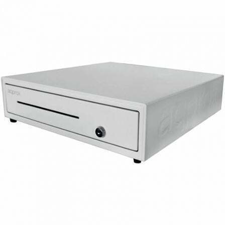 El APPCASH01WH es un cajón portamonedas eléctrico fabricado con material muy resistente al impacto. Dispone de compartimento de billetes inclinado y cajonera de monedas extraíble, ambos totalmente ajustables. Además, incorpora ranura frontal para guardar cheques sin necesidad de abrir el cajón. Con llave con bloqueo de tres posiciones para una mayor seguridad.