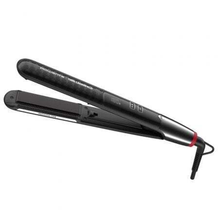 Con un cepillo integrado y nuestro exclusivo revestimiento Keratin & Glow, la plancha de pelo K/Pro Stylist de Rowenta x Karl Lagerfeld permite conseguir una gran variedad de estilos con resultados de peluquería. Consigue el look deseado en una sola pasada gracias al sistema de placas flotantes, y líbrate del encrespamiento con la combinación de nuestra tecnología iónica con el revestimiento Keratin & Glow. Todo esto en una herramienta de moldeado intuitiva y fácil de usar gracias a la pantalla LCD y a los prácticos ajustes de temperatura, para conseguir un alisado o rizado profesional de la forma más sencilla. *% promedio, prueba en laboratorio independiente en comparación con el cabello natural, Francia 2021