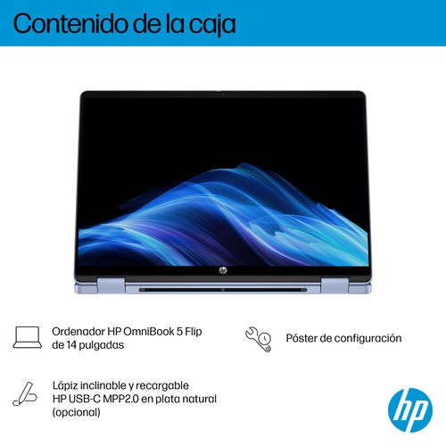 OmniBook 5 Flip 2-in-1 Laptop 14-fp0010ns, Windows 11 Home, 14", Pantalla táctil, Intel Core™ i5, 16GB RAM, 512GB SSD, 2K, Celeste