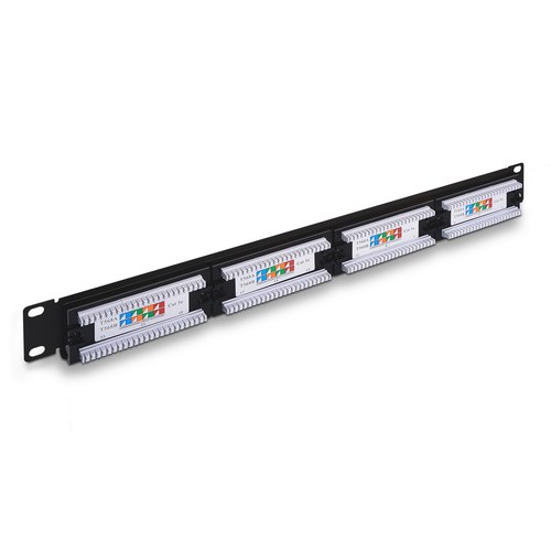 Panel de parcheo de 24 puertos RJ45 Cat.5e UTP, 19″ 1U dual IDC, negro