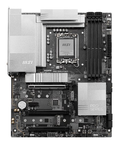 MSI PRO Z890-P WIFI. Fabricante de procesador: Intel, Socket de procesador: LGA 1851 (Socket V1), Procesador compatible: Intel Core Ultra (Series 2). tipos de memoria compatibles: DDR5-SDRAM, Memoria interna máxima: 256 GB, Tipo de ranuras de memoria: DIM