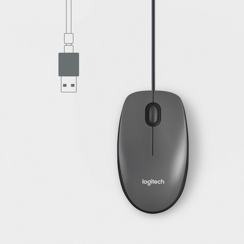Logitech M100. Factor de forma: Ambidextro. Tecnología de detección de movimientos: Óptico, Interfaz del dispositivo: USB tipo A, Resolución de movimiento: 1000 DPI, Tipo de botones: Botones presionados, Cantidad de botones: 3, Tipo de desplazamiento: Rue