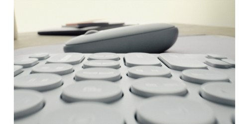 Estilizado teclado y ratón Bluetooth® multidispositivo con teclas y botones personalizables.